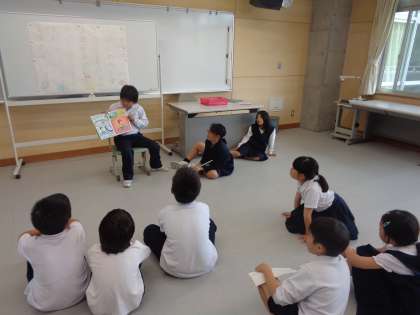 5月の誕生集会をしました。係からの出し物(読み聞かせ)やプレゼント渡し、歌を歌ってみんなでお祝いしました。