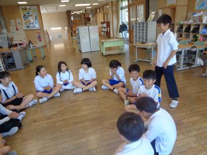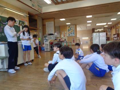お誕生日会をしました。みんなでつくった長い輪飾りを飾ってみんなで探偵ゲームやハンカチ落としを楽しみました。