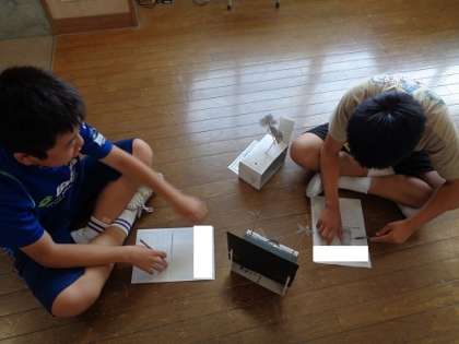 互いの作品を見たり、動かしたりしながら、工夫されているところやおもしろいところ等を伝え合いました。