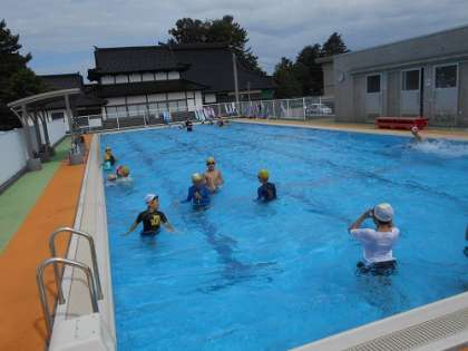 自分たちできれいにしたプールを使って、今年度初めての水泳学習を行いました。