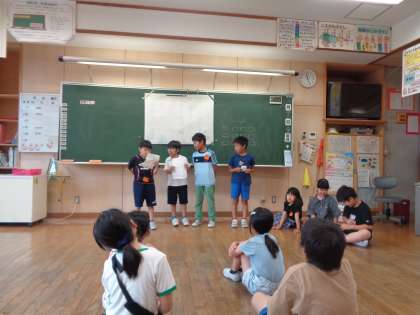 6月の誕生日集会をしました。クイズやプレゼントわたし、歌を歌ってお祝いしました。
