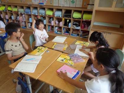 育ててきた野菜が実ってきました。なすやミニトマト、大葉が続々と収穫されています。国語では、グループで私の考えた、「あったらいいもの」を紹介しました。友達の発想にびっくりしていました。