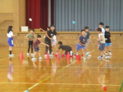 今日のチャレンジタイムは、「投げる運動」と「長縄跳び」の2つの運動から、自分で選んで取り組みました。体育館では、たくさんの子供たちが投げる運動に挑戦していました。