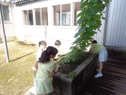 朝の時間を使ってへちまのまわりに生える雑草の草むしりもがんばっています。