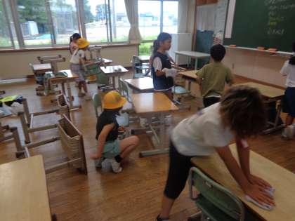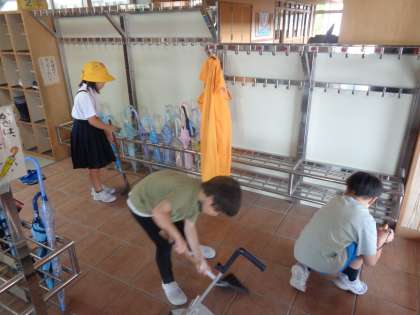 1学期の感謝の気持ちを込めて、身の回りの掃除をしました。