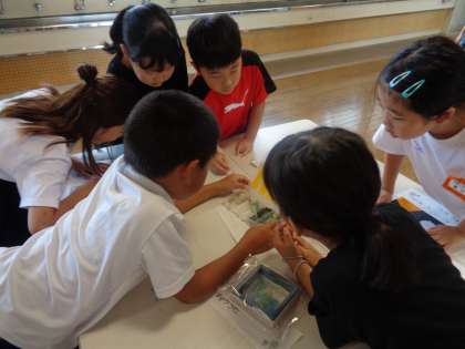 2学期がスタートしました。友達との久しぶりの再会にうれしそうに夏休みの話をしていました。また、夏休みの作品を互いに見せ合っていました。
