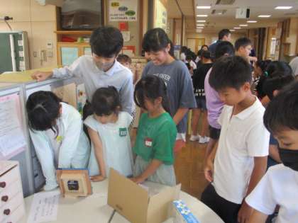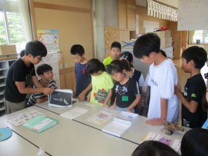 今日はファミリー班で、夏休みの作品紹介をしました。がんばったところや楽しかったところなど、互いに伝え合いました。