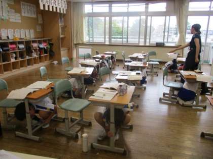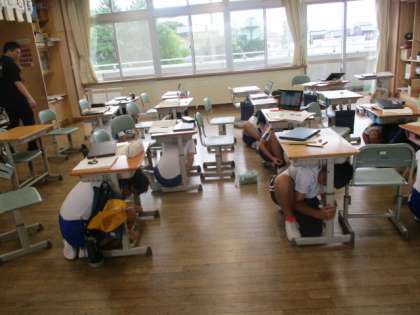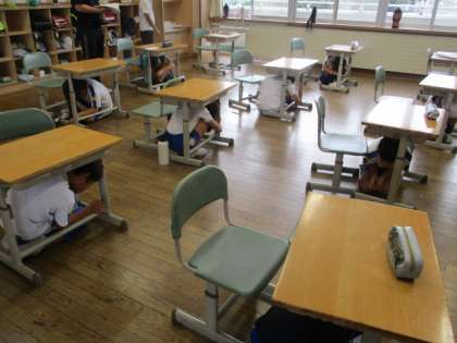 昨日9月1日は「防災の日」でした。今日は学校で「シェイクアウト訓練」を行いました。地震が発生したら、身を低くして、頭を守ることを訓練で学びました。