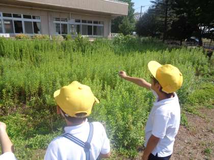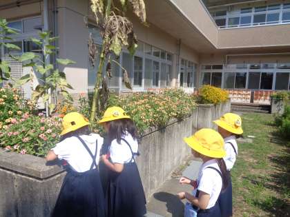 秋になってきたなと感じるものを探しに行きました。ひまわりの種やとんぼ等、夏の終わりを感じています。