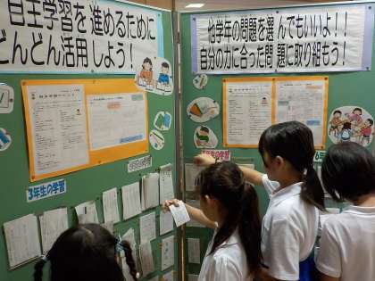 2学期最初の家庭学習がんばり週間期間です。子供たちは、自分が立てた目当てを達成するために、毎日、家で学習に取り組んでいます。学校の自主学習コーナーからプリントを選んで持って行く子供もたくさんいます。