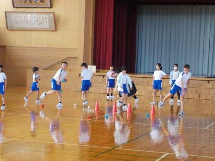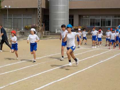 毎週月曜日と水曜日の業間はチャレンジタイムです。子供たちは、50m走、ボール投げ、走り幅跳びに分かれて、自己記録の更新に向けてチャレンジしています。