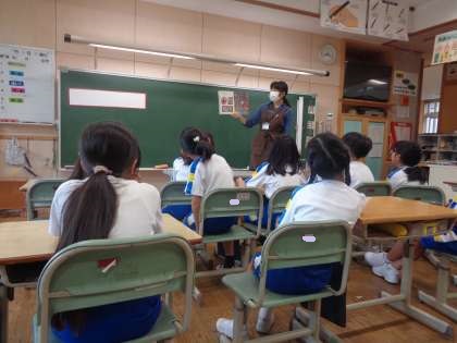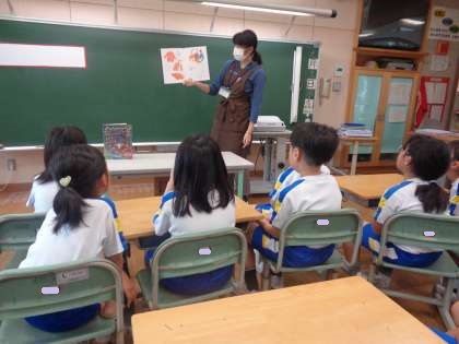 朝読書の時間に、図書館の方が絵本の読み聞かせに来てくださいました。一生懸命に耳を傾けて聞いていました。