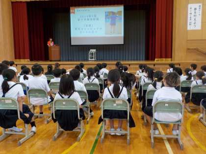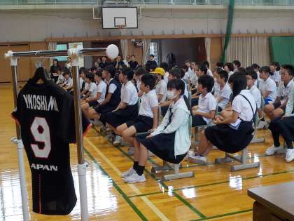 ハンドボールの現役選手をお招きし、「夢を叶えよう〜楽しく輝く未来へ挑戦!〜」と題して、お話を聞きました。困難にぶつかっても、あきらめずに努力を続けることの大切さを教えてくださいました。