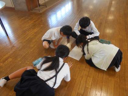 5・6年生で協力して、ファミリー班の判じ絵のデザインづくりを進めています。