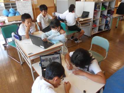 5・6年生で協力して、ファミリー班の判じ絵のデザインづくりを進めています。