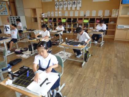 今日は、「小」の清書を行いました。はねに気をつけながら書きました。