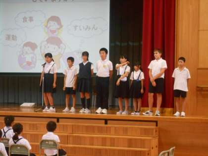 スクールカウンセラーの先生を講師にお招きし、学校保健委員会を開催しました。テーマは「心と健康について考えよう」です。まずは、保健美化委員会の子供たちが、げんキッズの結果から、本校の子供たちの実態について発表しました。