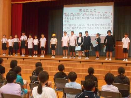 今日は宮小学校の5年生が来校し、交流学習を行いました。これまで練習してきた発表だけでなく、会場の準備から後片付けまで一生懸命取り組んでいました。