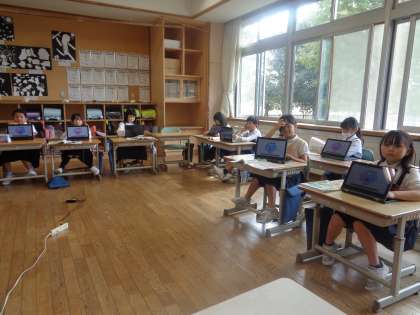自分の宝物について考えました。タブレットを使って、自分の気持ちを表しました。