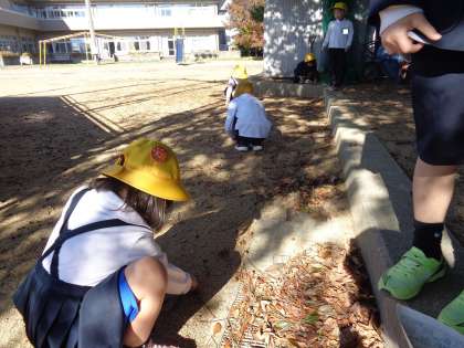 大きなドングリが少なくなったので、今日はみんなで拾いに行きました。以前はあまりなかった種類のドングリもたくさん落ちていて、たくさんの種類のドングリを集めることができました。