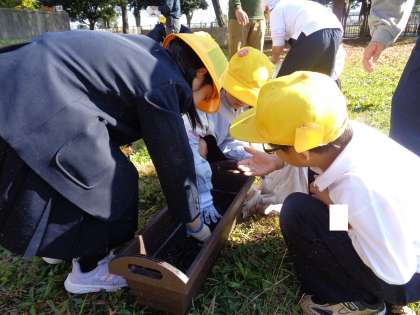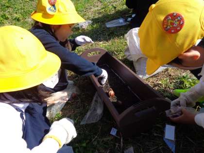 外部講師をお招きし、チューリップの球根を植えました。