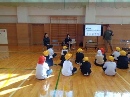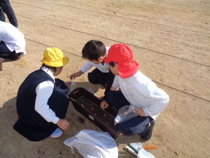 お話を聞いた後に、プランターにチューリップの4種類の球根を色の配置を考えながら植えました。