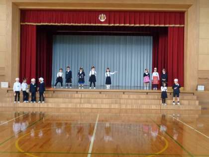 せりふを大きな声で言えるようになりました。友達と力を合わせ、がんばっています。