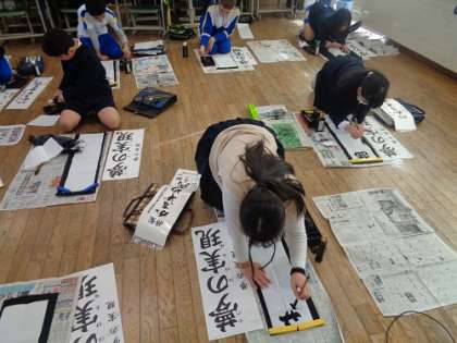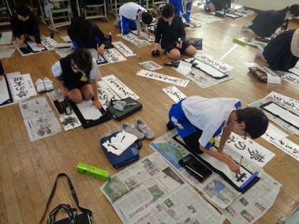 今日から書初用紙を使った練習が始まりました。