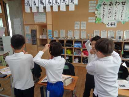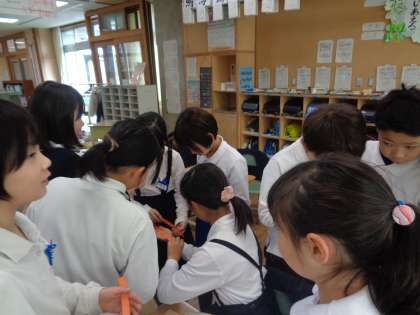 保健の学習で、1年生から2年生まで、2年生から3年生まで、3年生から4年生までの身長の「のび」を確認しました。身長の変化を紙テープで表したことで、「私は3年生からののびが大きい!」「ぼくは、毎年同じくらいずつのびているよ」「1年生から4年生まではこんなに身長がのびたんだね」と、紙テープを友達や今の自分と比べていました。