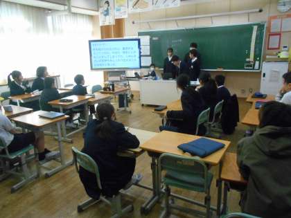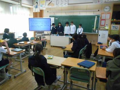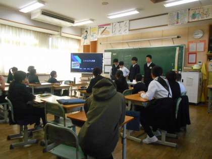 今日は6年生から総合的な学習の時間に行った保育所訪問での学びを紹介してもらいました。
