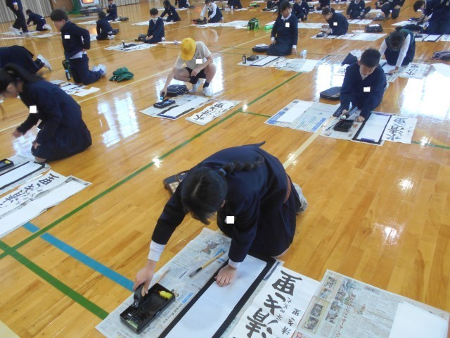 今日から3学期がスタートしました。始業式の後の書き初め大会では、丁寧な字を書こうと集中して取り組んでいました。
