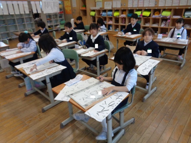 また、書き初め大会では、これまでの練習を思い出しながら丁寧に書いていました。