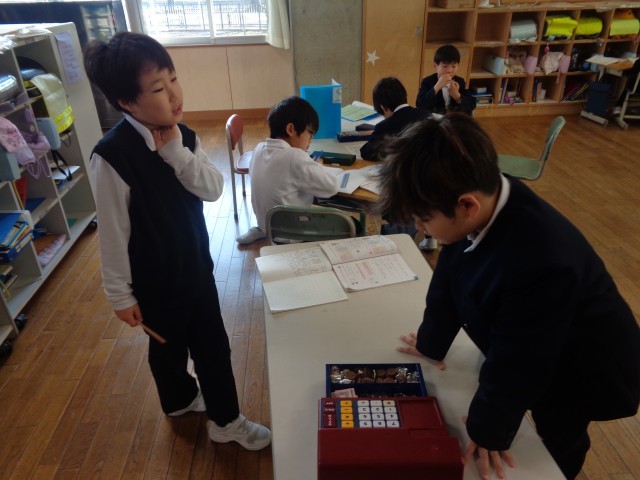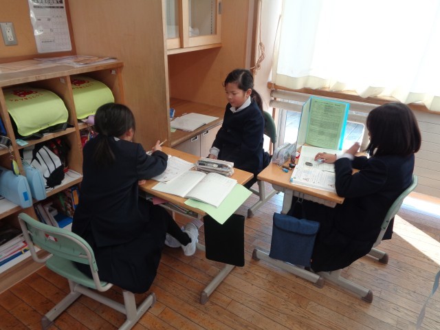 算数の時間に、マイペース学習に取り組んでいます。自分のペースで課題に取り組み、友達の力も借りながら学習を進めています。
