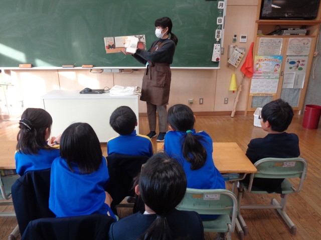 図書館の方の読み聞かせがありました。今回は、節分が近いということもあり鬼の出てくる物語でした。みんなお話に聞き入っていました。