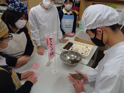 地域の方に教えてもらいながら、みんなでさくらもちをつくりました。