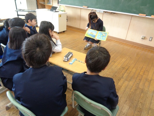 朝の読書タイムの時間に、本係からの読み聞かを行いました。みんなお話に聞き入っていました。