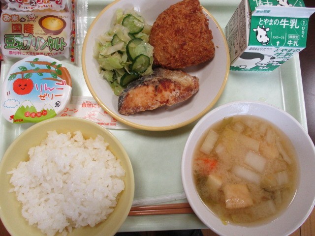 そのほかの献立は、ご飯、牛乳、和風サラダ、具だくさん汁です。