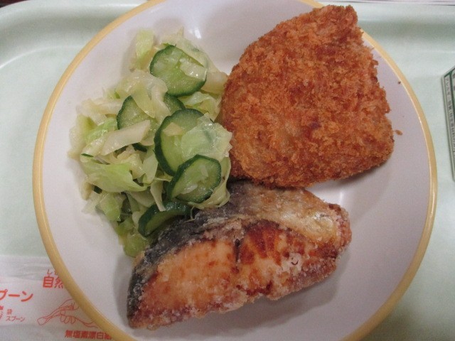おかずは、ますの竜田揚げと肉じゃがコロッケ、デザートはリンゴゼリーと豆乳プリンタルトから選びます。