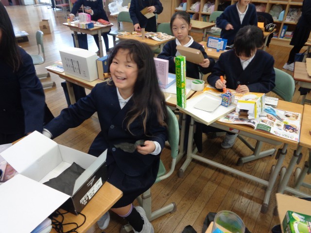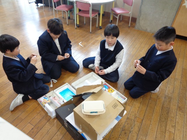 小さな「ともだち」が暮らす家をつくっています。思い思いの家を楽しく組み立てました。