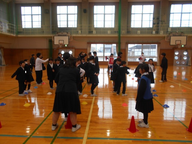 卒業お祝いプロジェクトで5年生が計画していた6年生と各学年との交流が始まりました。1回目は2年生と6年生とで、鬼ごっこをしました。