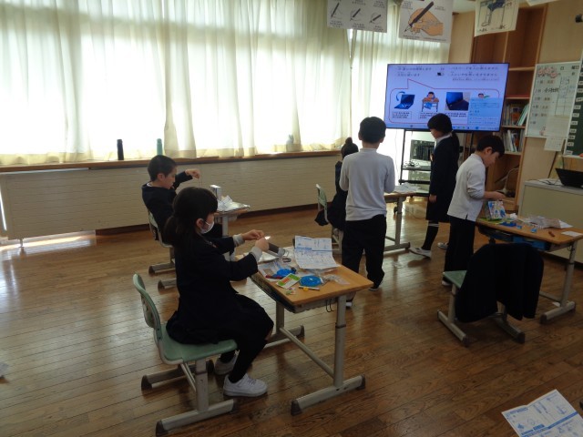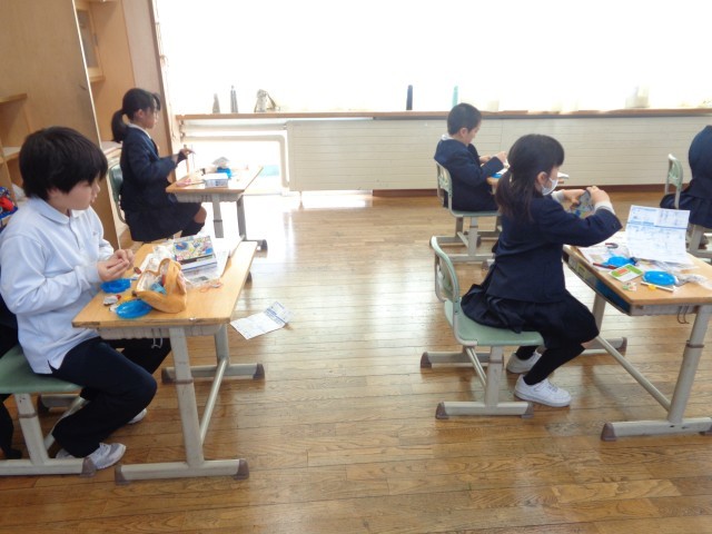 磁石の性質を利用した、遊べる物をつくりました。友達と相談しながら楽しくできました。
