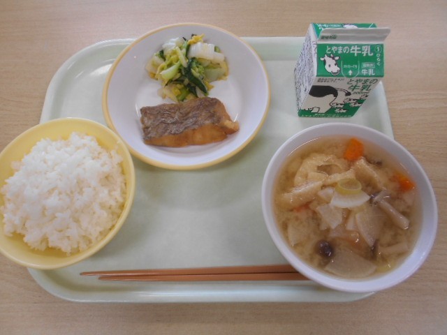 今日の献立は、ごはん 牛乳 ホキのレモンあじ おひたし みそしる です。