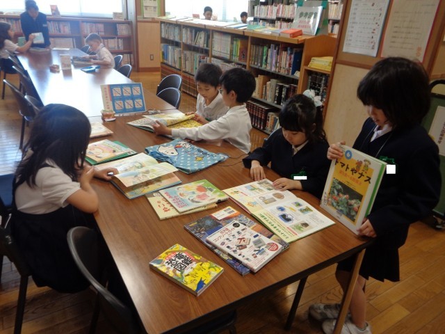 好きな物語のシリーズを探して読んだり、生活科の学習で育てようと考えている野菜について進んで調べたりしていました。