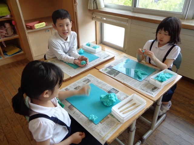 粘土を握った形からイメージを広げて、造形遊びを楽しみました。