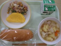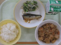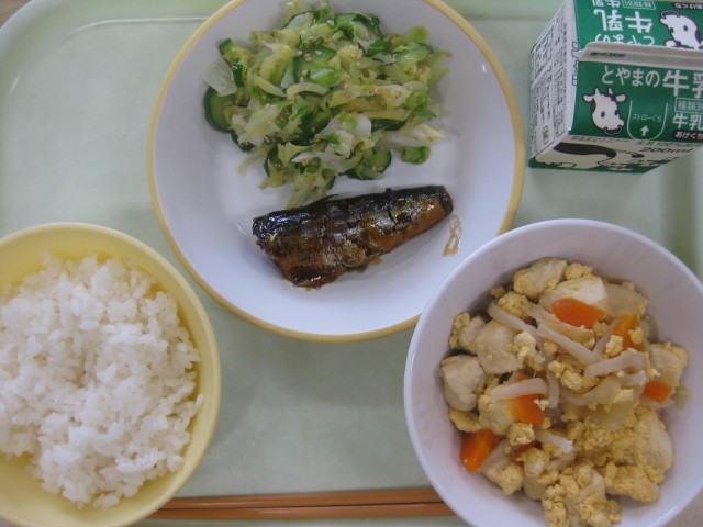 今日の献立は、ごはん 牛乳 いわしの生姜味 あわせ和え 豆腐の錦とじ  です。