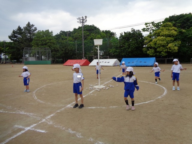 ダンスの動きを覚え、リズムに合わせて踊ることができるようになりました。玉の投げ方も、コツをつかんできたようで、たくさん入るようになってきました。