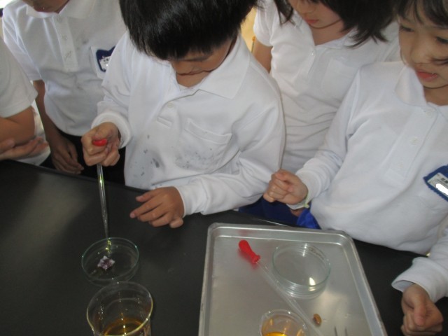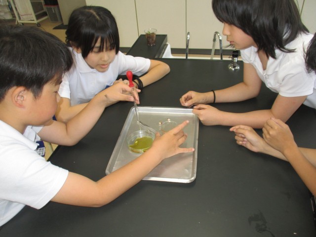 理科の学習では、インゲン豆とヨウ素液を使って実験をしました。