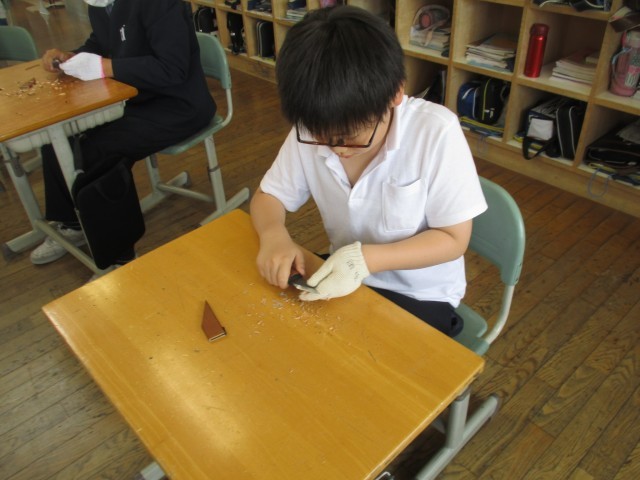 宿泊学習に向けて、小刀を使って鉛筆を削りました。持ち方や刃先を下に向けることを意識して削ることができました。宿泊学習では竹を削ってスプーンを作ります。今回の経験を生かしてどの子もすてきな竹スプーンを作ることができそうです。