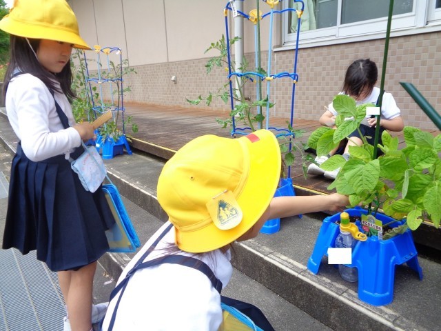 生活科の学習で野菜の苗を植えてから、1ヶ月がたちました。