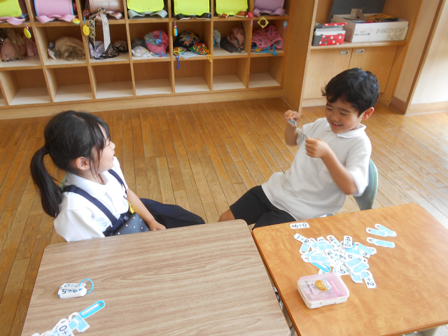 計算カードをつかって足し算の練習をしました。足し算名人目指して頑張りましょう。